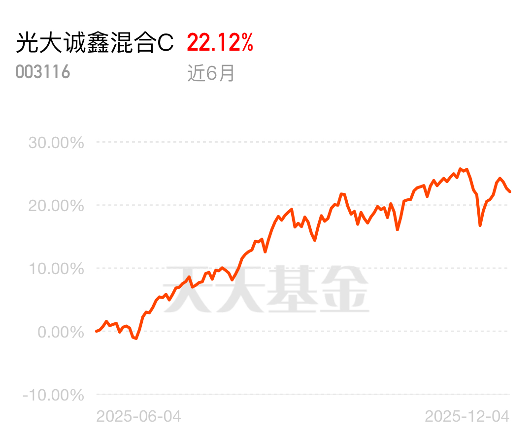 周期板块走强,有色金属、化工等行业量价触底回升,海外需求逐步复苏。光大诚鑫混合 C 近 6 个月涨 22.12%,提前布局顺周期标的,把握估值修复机会。$光大诚鑫混合C$