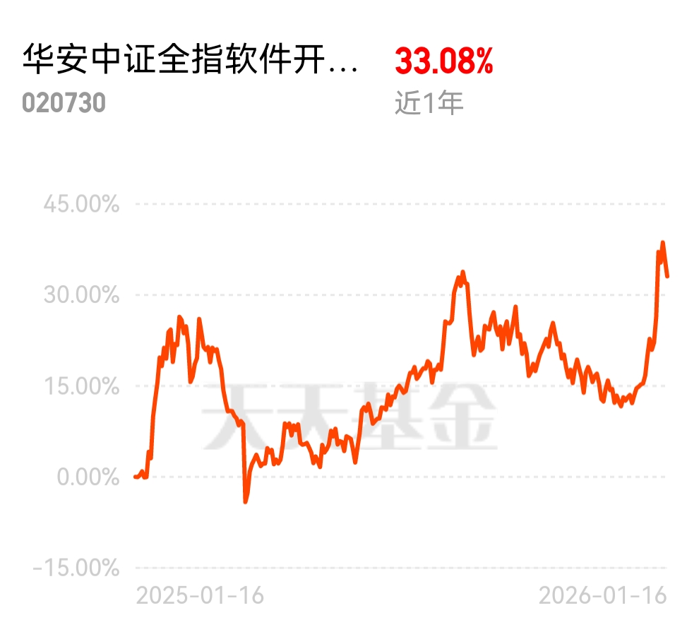 卡位 AI 应用黄金赛道$华安中证全指软件开发ETF发起式联接C$ 近一年大涨 33.08%,覆盖软件全产业链,不用纠结赛道,躺赢硬科技浪潮