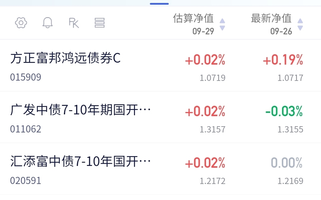 早盘超长利率债继续预定恐龙蛋。今天央妈继续净投放呵护债市,这几天宽松流动性确实对债市支撑不少!看下市场表现,盘面显示:长久期利率债领涨,10年期红0.2BP、超长红0.9BP,信用债表现一般,主要是交易比较少。预计今天方正鸿远15-20蛋,收蛋能力确实可怕,回暖的时候收蛋数还是很可观的,这两天56个蛋也是最多的。7-10年3-8蛋,0-5年的话1-3蛋吧。目前看债市经过调整后加上这几天央行不断释放宽松流动性,我觉得债市延续一波回暖应该是没问题的,这么看还得涨一段时间!$广发中债7-10年国开债指数E$ 今天预计收蛋2-5个,一起加油#九月基金投资策略#