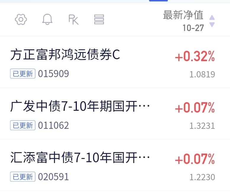 今天债市走出一波像样反弹,利率债领涨,国债期货全线上扬。超长债热度延续,市场情绪转暖。方正鸿远今天继续收32个恐龙蛋,弹性在同类中靠前,其他基收蛋普遍乏力,差距还是挺明显的。$广发中债7-10年国开债指数E$ 今日收了7个蛋,一起加油