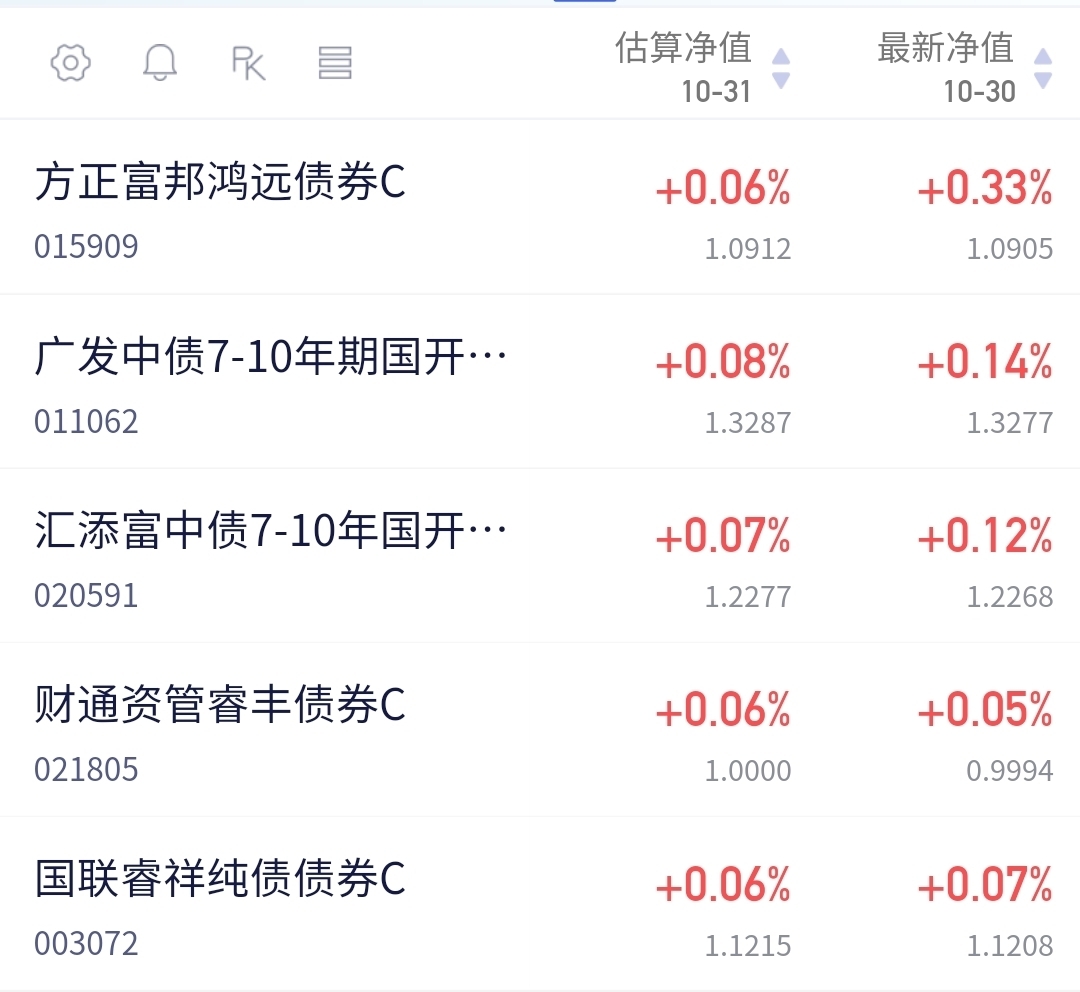 债市又要起飞,超长债又是涨的六亲不认了啊!看下市场表现,盘面显示:长久期利率债领涨,10年期红1BP、超长红2BP,信用债表现也是开始回暖,全面上涨。预计今天方正鸿远46-52蛋,这种行情下收蛋还是很足的,昨天也是利率债里收蛋最多。7-10年13-18蛋,0-5年的话1-5蛋吧。重启买债以后市场情绪主导的债市直接开始起飞了,加上股市对债市压制少一些了,债市真是迎来曙光了。债牛要回来了!$广发中债7-10年国开债指数E$