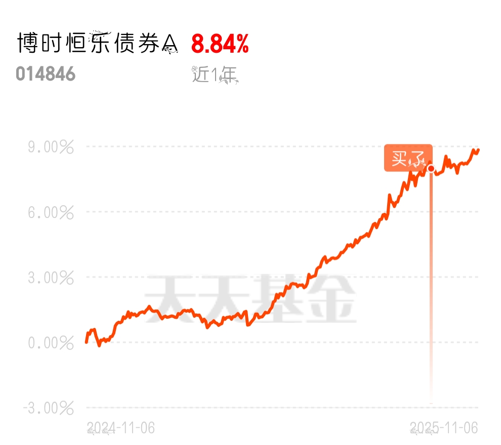 昨天债市整体调整,但$博时恒乐债券A$ 却逆市上涨,收了15个蛋。上周它还给我分红了40多块,我直接选的红利再投,份额直接自动增加,相当于免费加仓。这周又把单日限购额度从1万放宽到500万了,这一看就是不差钱、运转良好的表现,感觉后面有戏。央行10月底重启公开市场国债买卖操作,10月净投放200亿,直接确立了债券收益率的阶段性顶部,这基的债券仓位大概率配置了高性价比的中短端品种,这也是它能抗住波动的关键。更妙的是权益部分,基金经理张李陵把控的20%左右权益仓位,没有盲目追高,而是聚焦高股息蓝筹和消费复苏标的,比如中炬高新、王府井这些消费股,近期消费板块随着经济弱复苏慢慢回暖,正好给收益添了弹性;还有科技成长股的布局,比如零跑汽车这类标的,贴合当下新能源汽车的政策风口,既不冒进又能捕捉结构性机会。现在大盘在4000点震荡,很多权益基金让人提心吊胆,反观债市有央行托底,资金面持续宽松,流动性也充裕,大环境友好。这只基金债券打底保稳健加上权益增强提收益的模式,简直是为当前市场量身定做的。#A股低开高走!国际资本看好中国资产#