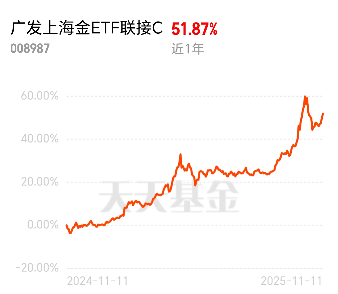 整体看黄金走势确实可以,震荡期差不多结束,该进场进场,加一笔$广发上海金ETF联接C$