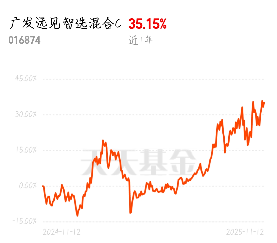 看这大红行情今天$广发远见智选混合C$是不是能有5个点啊?太猛了,继续加仓