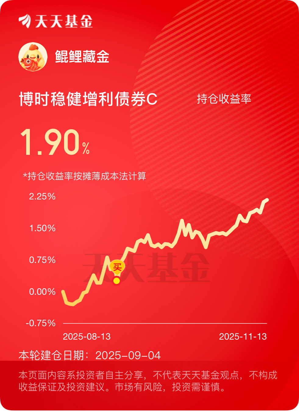 昨天债市一片绿油油,$博时稳健增利债券C$ 单不但稳住了净值,还逆风赚了4个蛋。这基不仅债券部分稳健,权益部分还总给惊喜,半年涨了六七个点,一年下来累计攒蛋900多。这只基金债券部分的核心优势在于灵活的“哑铃式配置”策略,一方面配置短端利率债捕捉流动性宽松红利,11月DR001利率中枢预计比10月更低,短端资产收益空间正在打开;另一方面精选中高等级信用债增厚收益,重点布局了制造业和公用事业的产业债,这些行业近期信用利差持续收敛,违约风险低且票息稳定。这种策略在当前市场特别吃香,既避免了长久期债券的利率风险,又比纯短债基金收益更高。它权益部分的表现更是超出预期,基金经理精准布局“消费复苏+国企改革”两大热点。消费板块里重点配置了白酒和家电龙头,近期白酒批价企稳回升,家电则受益于消费补贴政策,相关个股股价稳步反弹;国企改革板块选了几家电力和建筑行业的标的,这些公司不仅股息率高,还在混改中释放出业绩弹性。这债券打底保安全、权益精选博收益的策略,比纯债基收益弹性更大。##沪指刷新10年新高!4100点指日可待?#