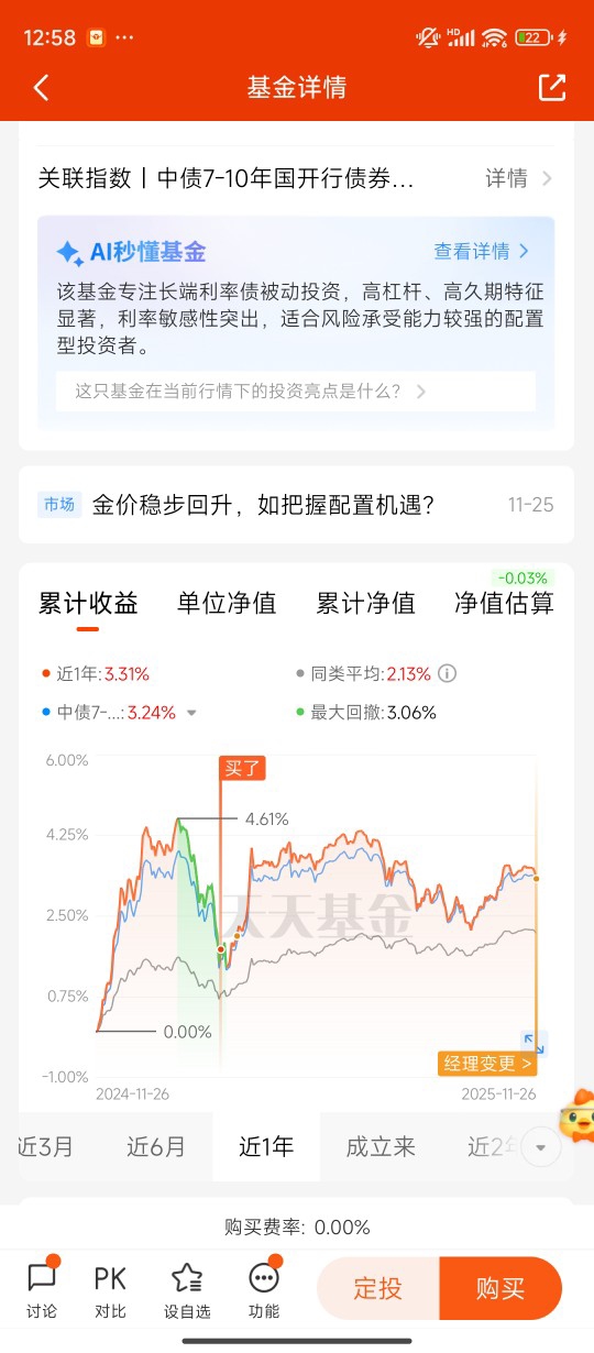 买债就不怕套牢,长期持有收益更香,这只中长债比存银行靠谱,打算一直定投,攒点闲钱