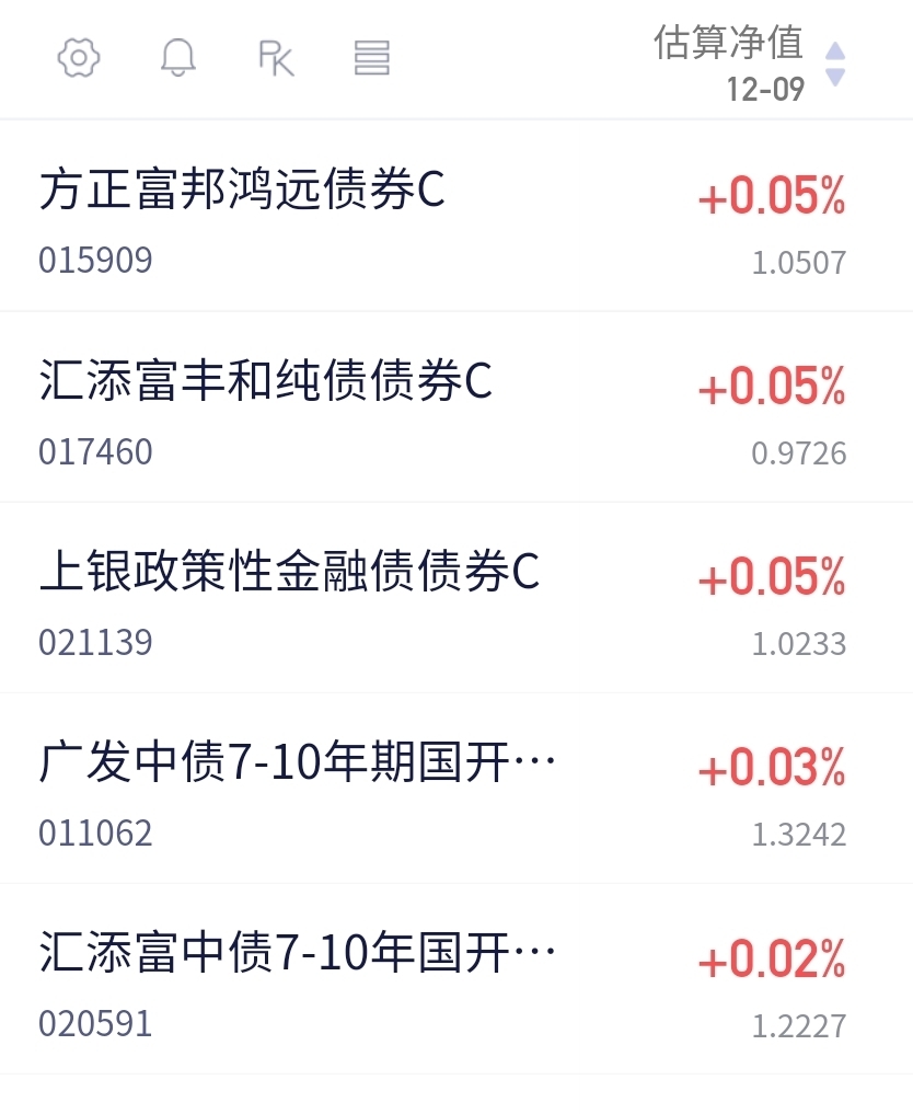 开盘就上涨,多头要接班了?看下市场表现,盘面显示:长久期利率债领涨,10年期红0.5BP、超长红1.2BP,信用债表现也是开始回暖,全面上涨。预计今天方正鸿远30-36蛋,这种行情下收蛋还是很足的,如果债市上涨的话都是涨的最多的。7-10年7-10蛋,0-5年的话1-3蛋吧。之前债市是窄幅波动,所以现在在经过调整以后,空间又出来了,可能又是新一轮反弹行情的开始。$广发中债7-10年国开债指数E$ 预计收3个蛋,一起加油