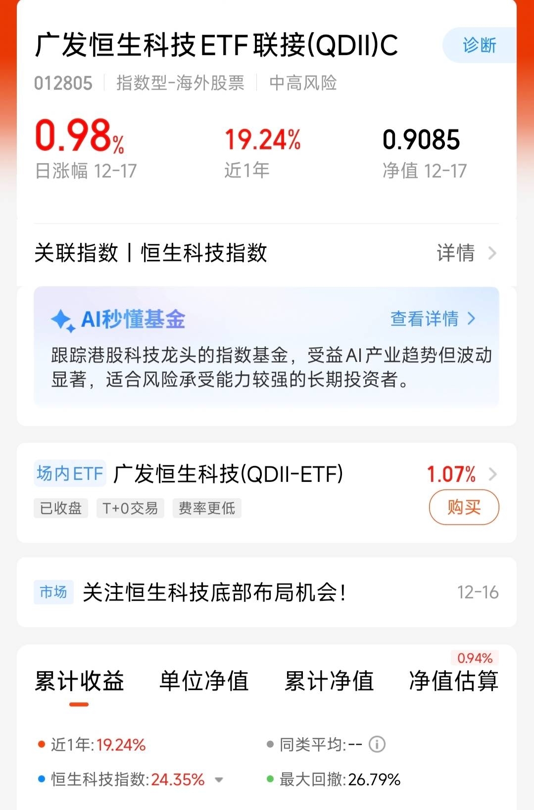 真要说的话今年南向资金流入是创新高的,$广发恒生科技ETF联接(QDII)C$ 还要涨的
