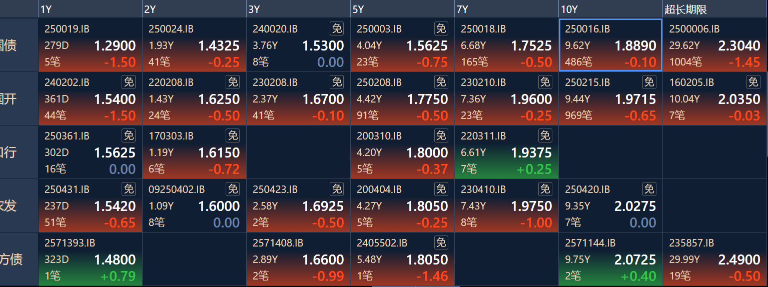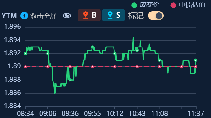 二、十年期国债收益率:1.889 -0.001%(国债收益率越涨,债市越跌,两者反向关系)