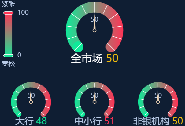 六、资金面情绪指数:全市场50 资金面维稳 (0-100紧张度递增,50为均衡,超过50反映资金紧张)