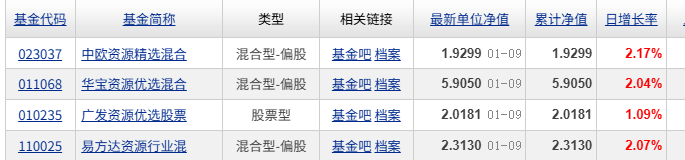 $易方达资源行业混合$ 今天上涨