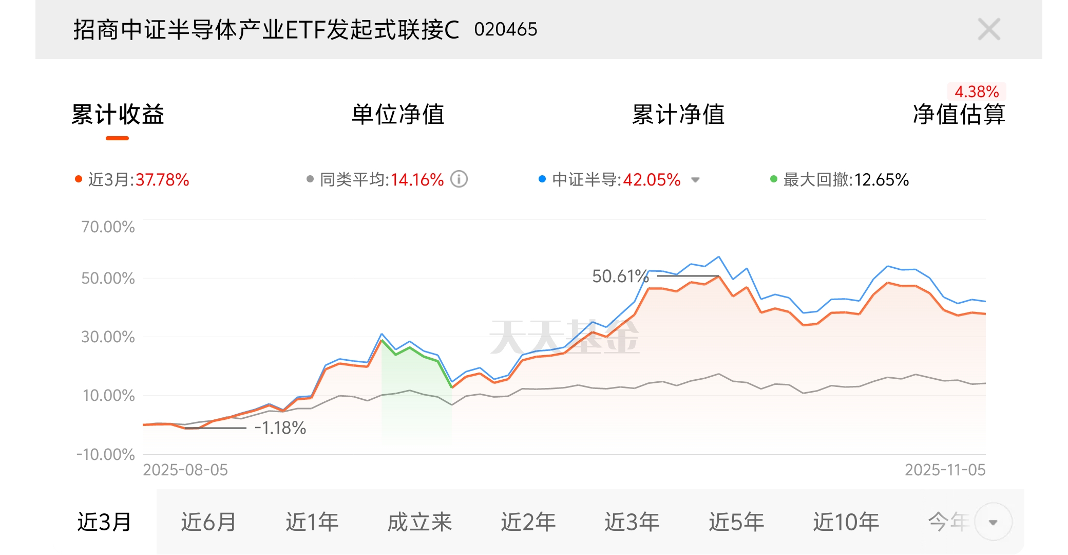 最近半导体板块关注度持续攀升,HBM需求爆发带动价格上涨,国产替代势不可挡。招商中证半导体产业ETF联接C近3个月涨37.78%,成分股集中度高于同类基金,90%聚焦核心环节,捕捉机遇更高效。