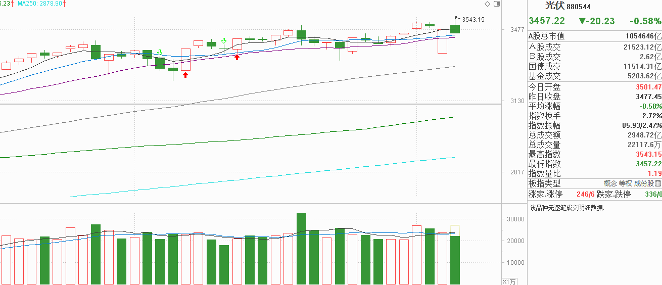 家人们,看看昨天光伏是怎么表演的!大幅低开后高走,低点与9月24号低点重合,反抽阳线还挺大的居然把5天线都收复了,从走势上看,光伏完全没有理会周末消息依然走独立行情,当然是看高一线。今天光伏高开后继续走高并创出反弹新高,与半导体相比明显是更强的,主要原因是光伏产业在盘中出现利好消息刺激,但我说过,光伏行业的细分很多,要让光伏顺利突破向上,各赛道的市场合力是很重要的。今天仅光伏产业涨起来,机器人是走弱的,储能与风电也没有跟随光伏产业同步走高,这就导致光伏只是单一赛道的独角戏表现,冲高回落是明确的。现在光伏属于下有明确支撑,向上却没有市场合力,能维持自9月11号大阳线后的箱体震荡容易,出现向上拐点挺难,还是要等资金合力流入后,光伏才有可能一飞冲天。