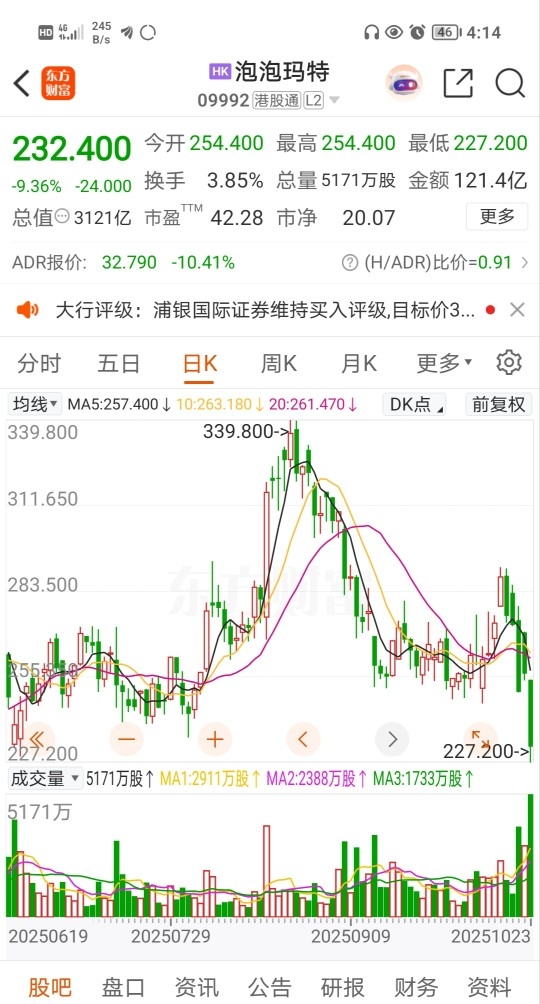 泡泡玛特,你不是很牛逼吗?鸡苟说你年底前能赶超茅子,你咋又回到了原点?咋了?不超茅子了?