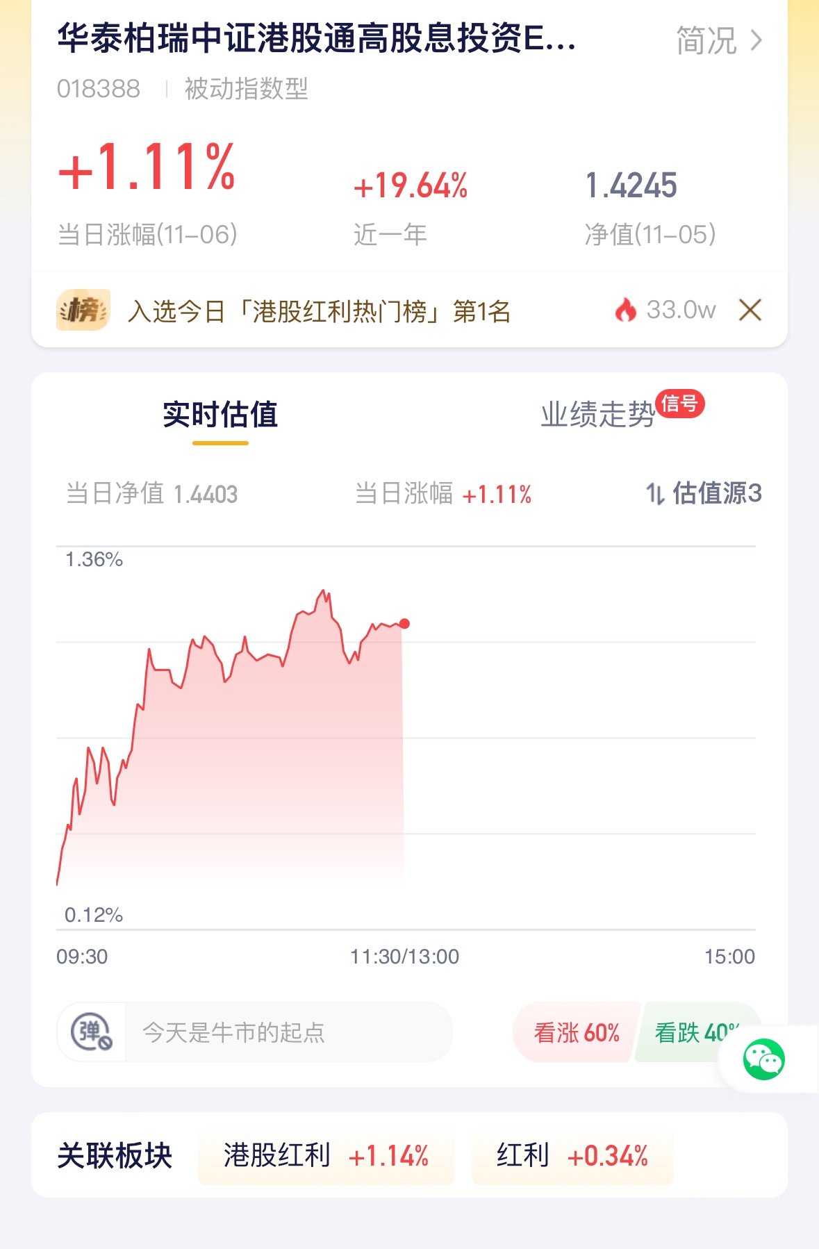 谁还没被这波红利行情圈粉啊!港股红利的优势真的太明显了,低估值、高股息,还有政策和资金双重加持,南向资金一直在净流入,机构也在悄悄布局,足以说明大家对它的看好。那些成分股都是经过市场检验的优质企业,分红稳定还抗周期,就算遇到市场波动也不用慌。我对比了好几家,最终选了华泰柏瑞,它跟踪的指数表现一直很亮眼,而且基金公司实力靠谱,能精准捕捉港股红利的机会,不用自己研究复杂的行情,小白也能轻松上手,想在震荡市里求稳赚钱的,这款真的可以重点考虑。$华泰柏瑞港股通红利ETF联接基金C$