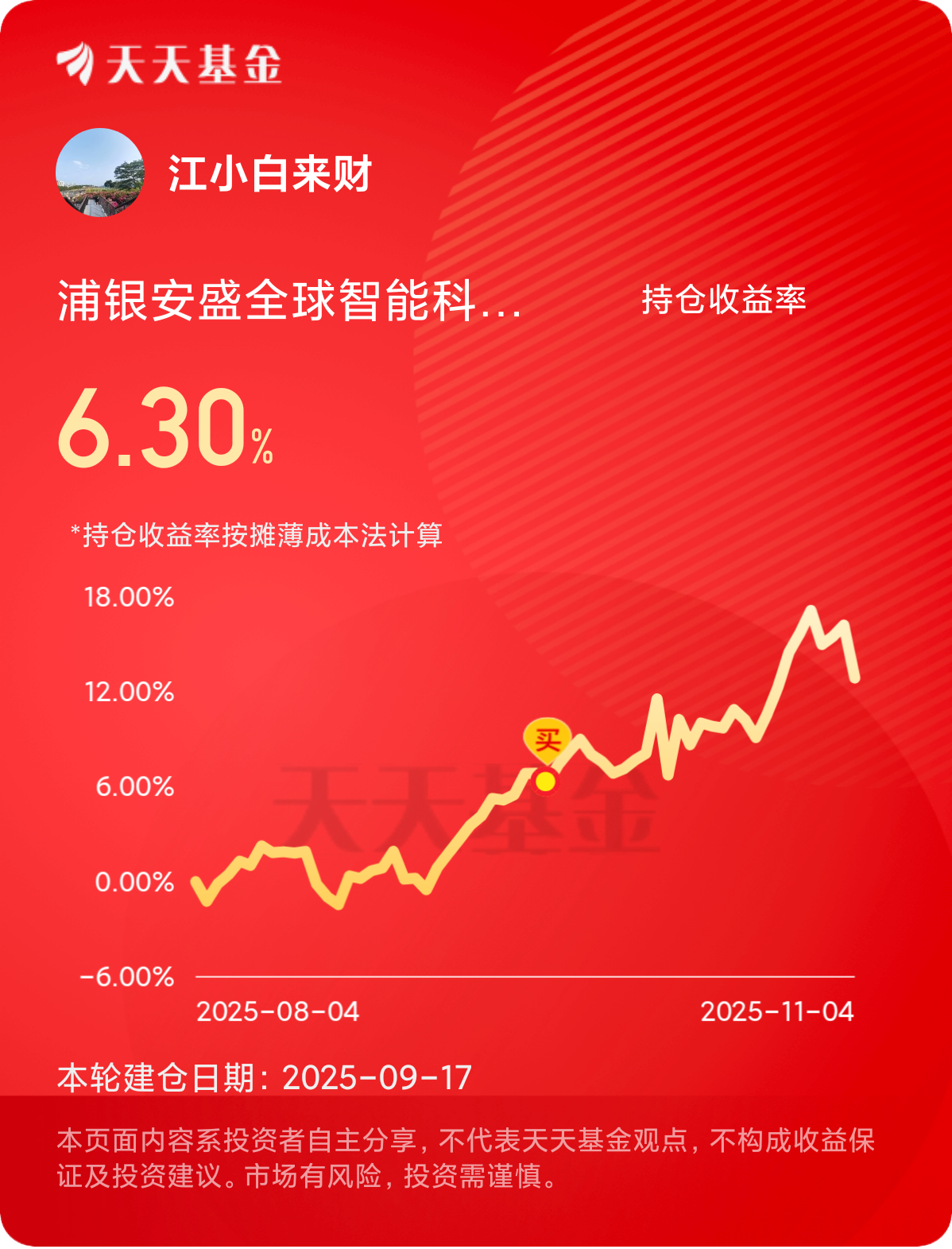 美股跳水也是入场的机会,哪次不是又回来了?AI盈利兑现正在发生,主线没变,只是获利盘阶段性兑现,浦银安盛全球智能科技重仓美股科技龙头,趁不限额赶紧上$浦银安盛全球智能科技(QDII)C$ #晒收益#