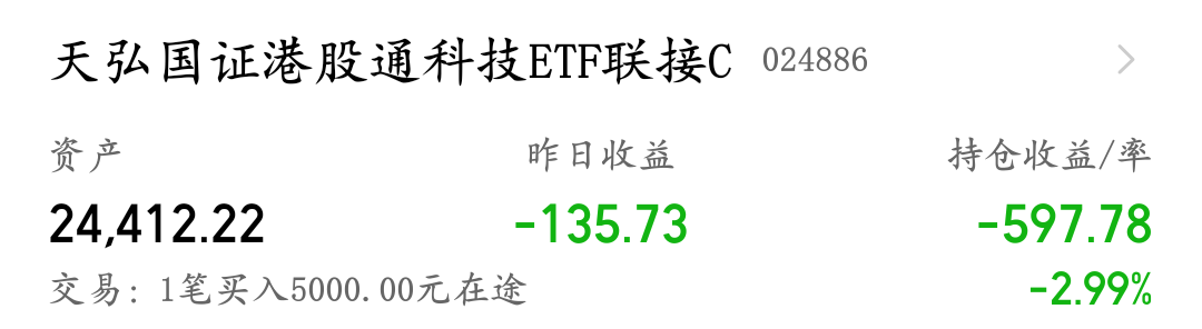 加仓买进5000的 $天弘国证港股通科技ETF联接C(OTCFUND|024886)$