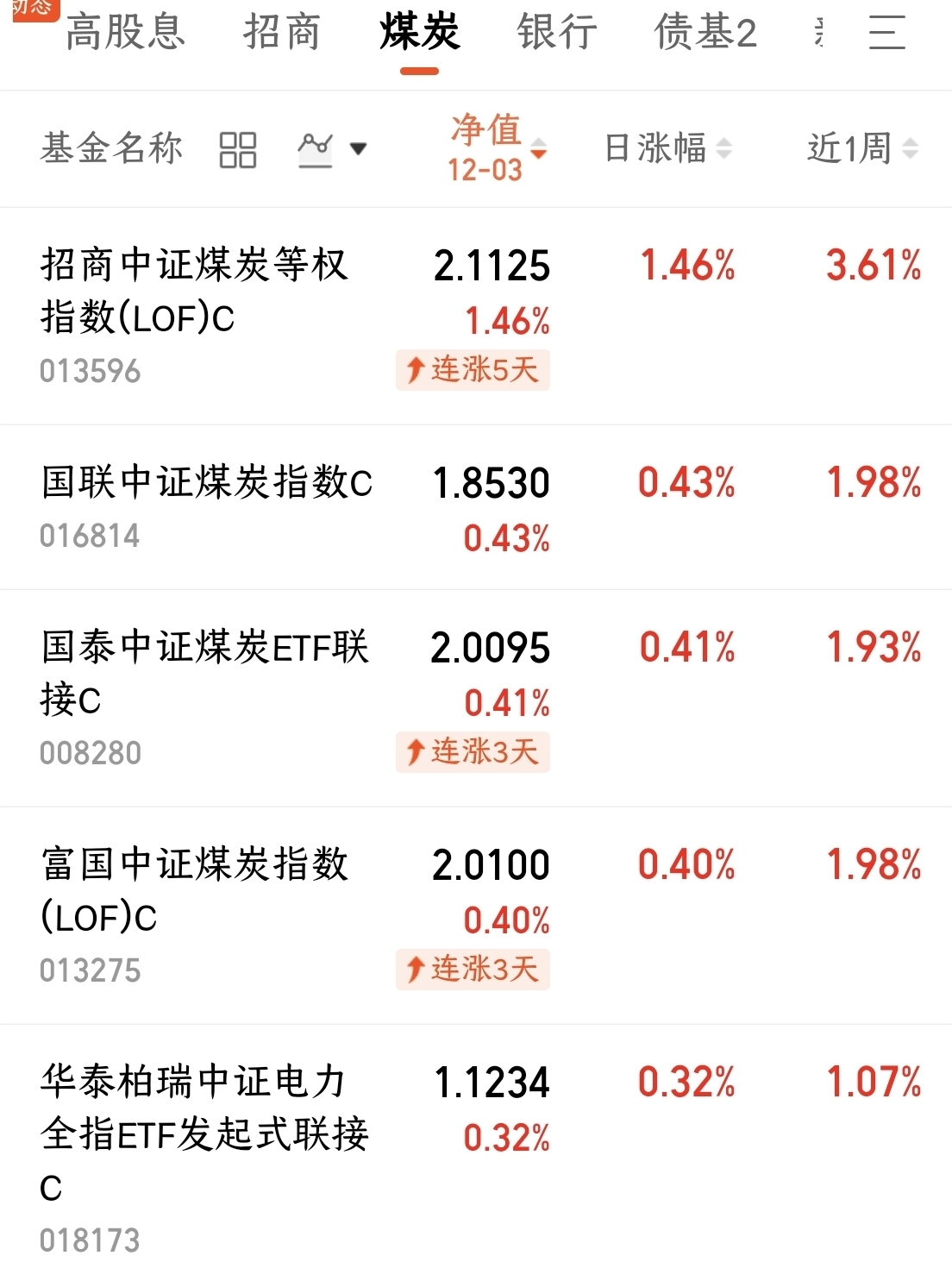 招商中证煤炭基金表现亮眼
