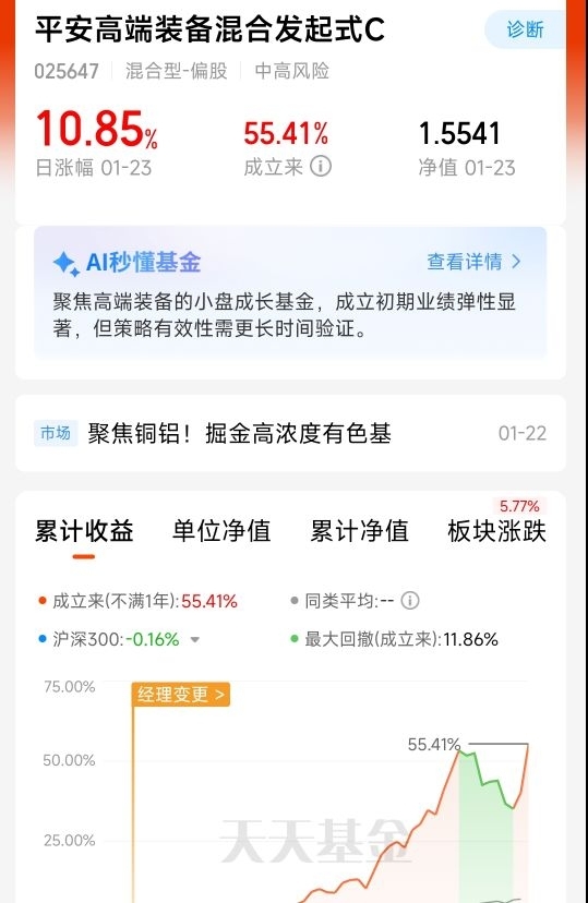 没想到今天能出现这样的走势,光伏和航天一起大涨!今天平安高端制造今天收11个点收