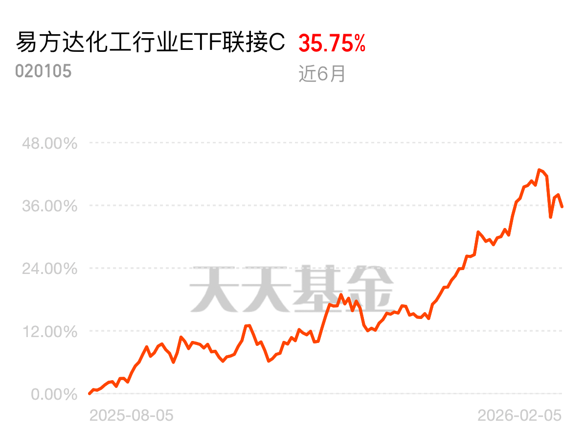 化工板块近期涨势太猛,2 月 3 日单日大涨 3.64%,多类化工原料同步冲高,石化产业指数覆盖全产业链龙头,波动跟行业景气度高度绑定,想布局就看易方达化工行业 ETF 联接 C$易方达化工行业ETF联接C$