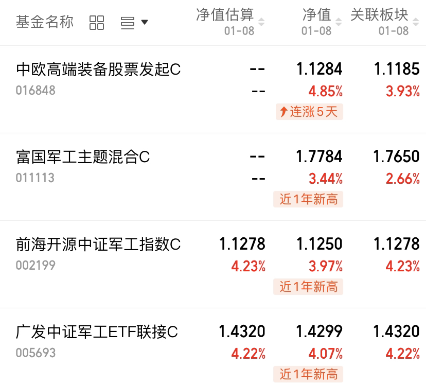 今天的行情还是很不错的,毕竟上涨家数比较多,但分歧也是比较大的。军工板块今天低开高走,继续表现中欧高端装备股票基金上涨4.85%,$富国军工主题混合C(OTCFUND|011113)$上涨3.44%,$前海开源中证军工指数C(OTCFUND|002199)$上涨3.97%,$广发中证军工ETF联接C(OTCFUND|005693)$上涨4.07%。