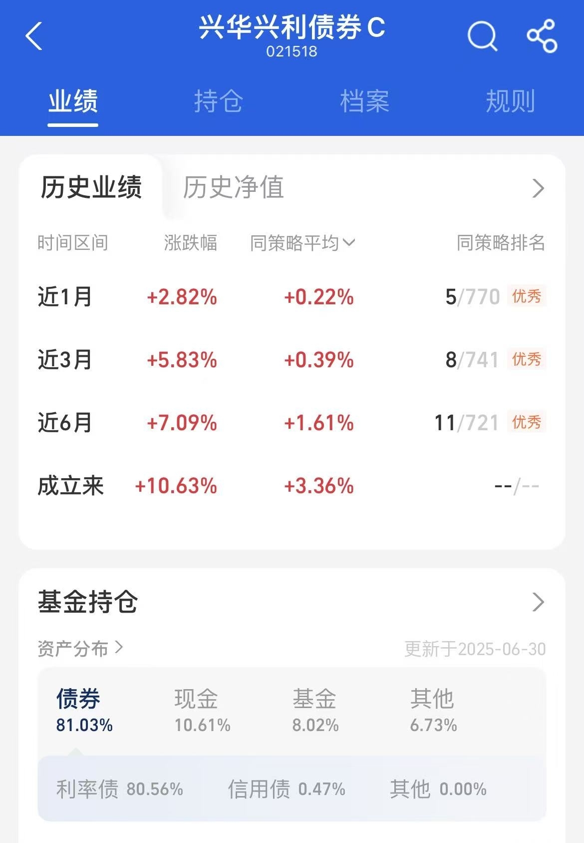 近一个月来,兴华兴利持续交出亮眼成绩单,昨日76个蛋的收益更让持有人倍感安心。基金既把握了债券市场的配置机会,又成功捕捉到权益市场的结构性行情,展现出全方位的投资能力和市场洞察力。$兴华兴利债券C$