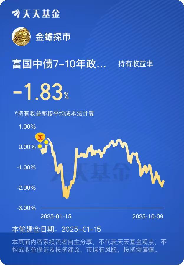 最后说说我的持仓策略和近期操作。我手里的基金分了 “进攻” 和 “防守” 两部分,防守端就是那只$富国中债7-10年政策性金融债ETF发起式联接A(OTCFUND|018266)$,最新净值 1.1242,这只基金波动很小,近 3 个月也就跌了 1.85%,拿来当底仓再合适不过,能对冲掉科技类基金的波动,目前占我总仓位的 10%,接下来打算保持不动。