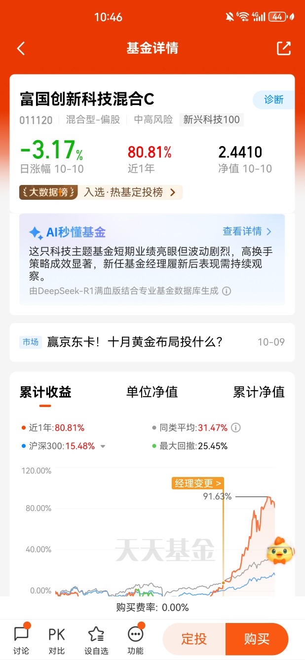 从长期逻辑看,硬科技是国家战略发展的关键领域,政策支持力度持续加码,技术创新的突破将不断为行业打开成长空间。富国创新科技混合C的基金经理对科技产业趋势把握精准,过往在硬科技板块的选股和择时能力突出,这让我对其在十月乃至四季度的表现充满信心。