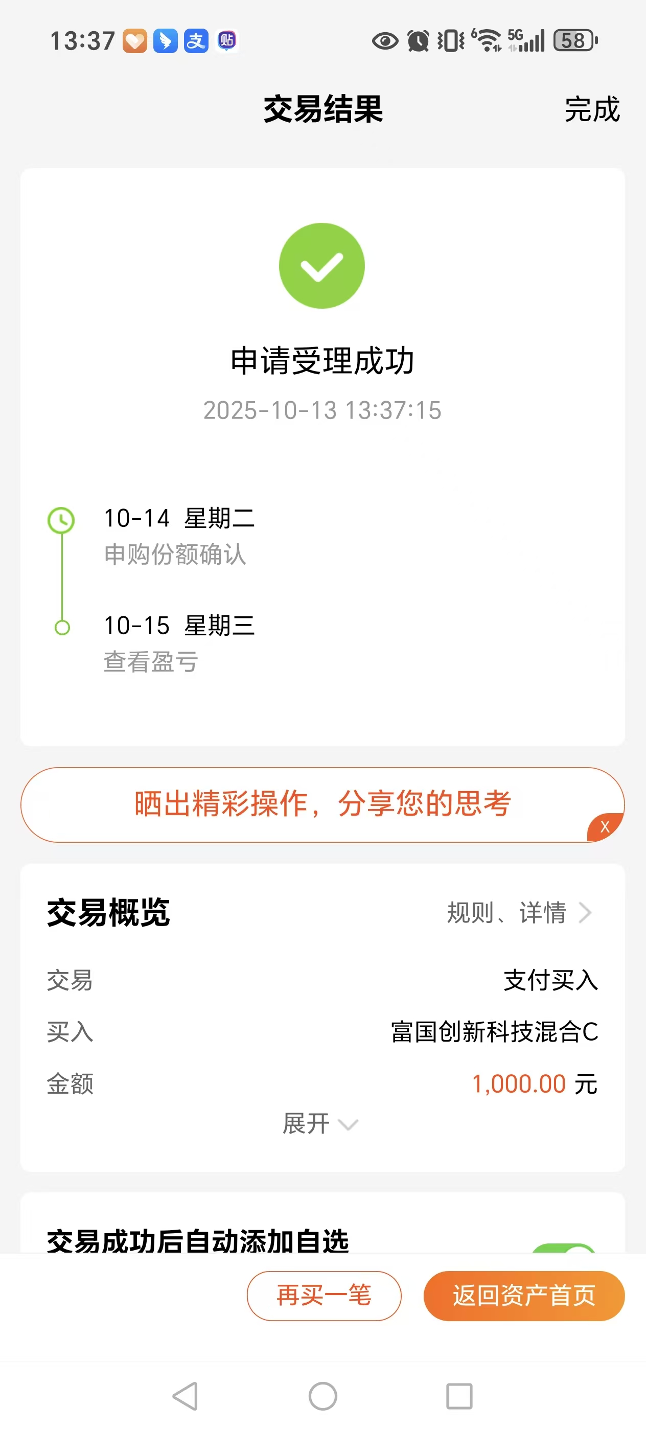 正好之前雨哥布局的$富国创新科技混合C$ 今天盘中也是出现了较大的跌幅,毕竟它持仓的CPO今天出现了较大的回踩,但雨哥认为这类主线品种调整的时间和空间不会太大,目前基本上算是已经到位了,那么今天来对其做一个买入操作,看好后续的反弹。