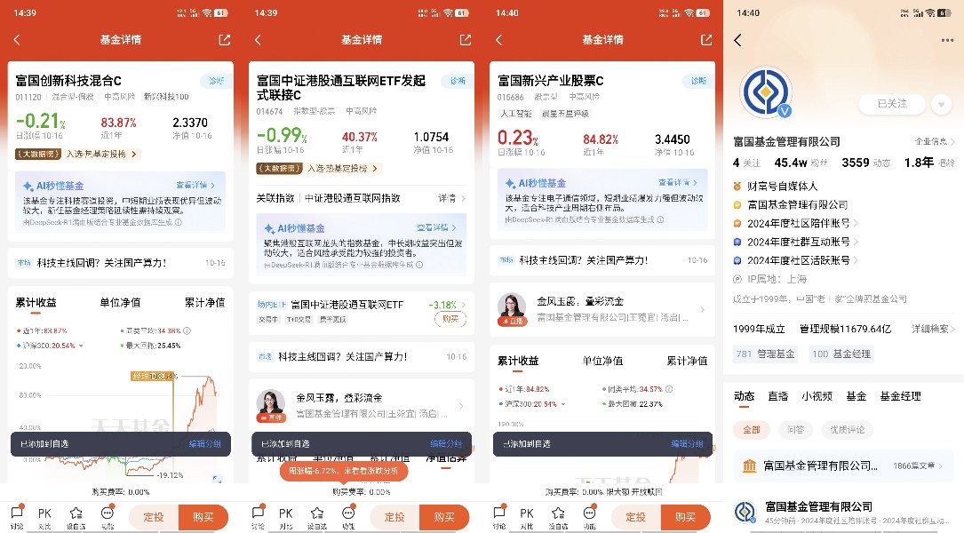不过,咱们直接买AI应用个股难度不小。AI技术更新太快,今天火的技术明天可能就过时,很难分清哪家公司是真有核心技术,哪家只是“蹭热点”;而且AI产业链复杂,从算力、算法到具体应用场景,细分领域太多,咱们没精力逐个研究,很容易买错、买贵。这时候,选一只聚焦科技赛道、重点布局AI应用的基金,比如$富国创新科技混合C$ (011120) ,就成了省心的选择。