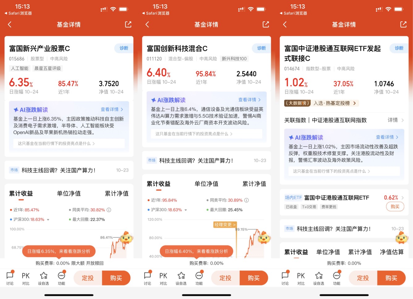 基于以上思考,我个人的打算是,将富国创新科技混合基金,作为我投资组合里的那柄“进攻之矛”来配置。我现在的资产配置是以宽基指数打底,行业基金作为补充。在行业选择上,我就偏好那些进攻性强、处于爆发前夜的板块。之前新能源行业0到1的突破阶段,让我获取到了不少的超额收益率。现如今,在“人工智能+”提出的大背景下,低空经济、具身机器人、传媒、算力等多个领域,都正处于从0到1的突破阶段,技术迭代快,想象空间大。说实话,未来哪个能成为绝对主线,我现在也看不清。这种“迷雾期”,与其自己瞎猜,不如借助像罗擎这样对新兴产业有深度研究和敏锐触觉的专业经理来掌舵,帮我穿越迷雾,捕捉机遇。