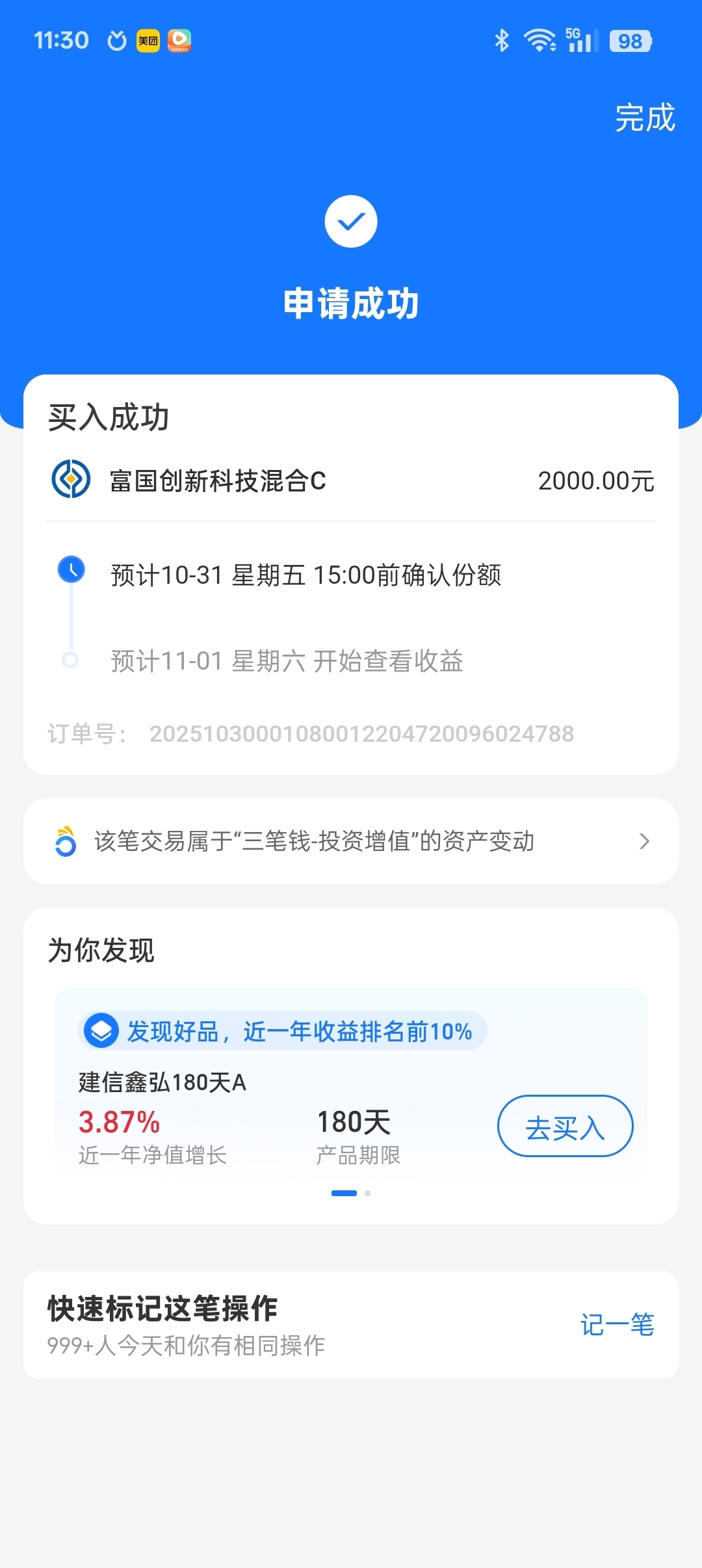 今日市场分化严重,大科技集体回调,也算是给我机会进场了,今天逢低入手2000$富国创新科技混合C$ ,这个产品专注科技赛道,业绩表现非常不错近一年涨幅107.78%近六个月涨幅更是达到了142.06%实在太牛了,受科技部强调十五五是科技强国关键攻坚期,加上目前科技发展迅速技术革新等利好消息影响,科技主题发展前景广阔,搬好小板凳坐等起飞了。