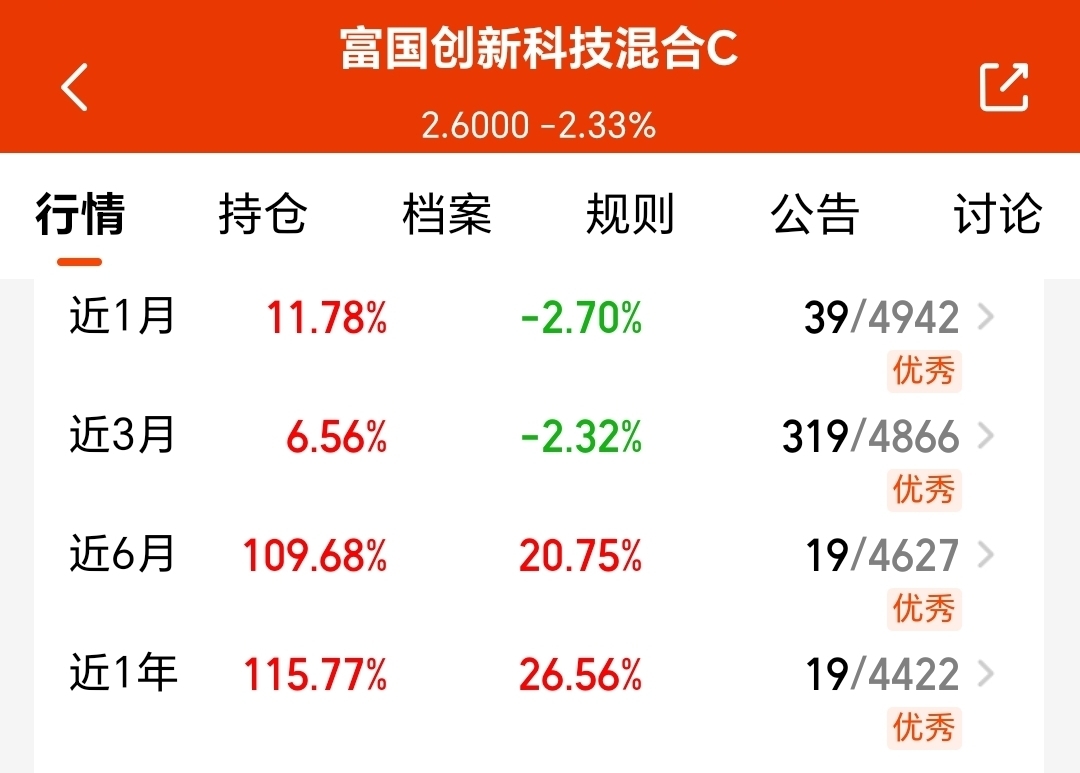 $富国创新科技混合C$ 布局CPO方向,主要聚焦于电子、通信、传媒等高成长科技领域主题,近6个月收涨109.68%,收益弹性还是非常高的。