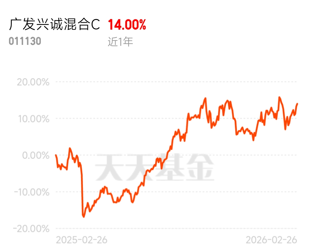里头几个能源股和消费股好像有点动静了,就是不知道能涨多久$广发兴诚混合C$