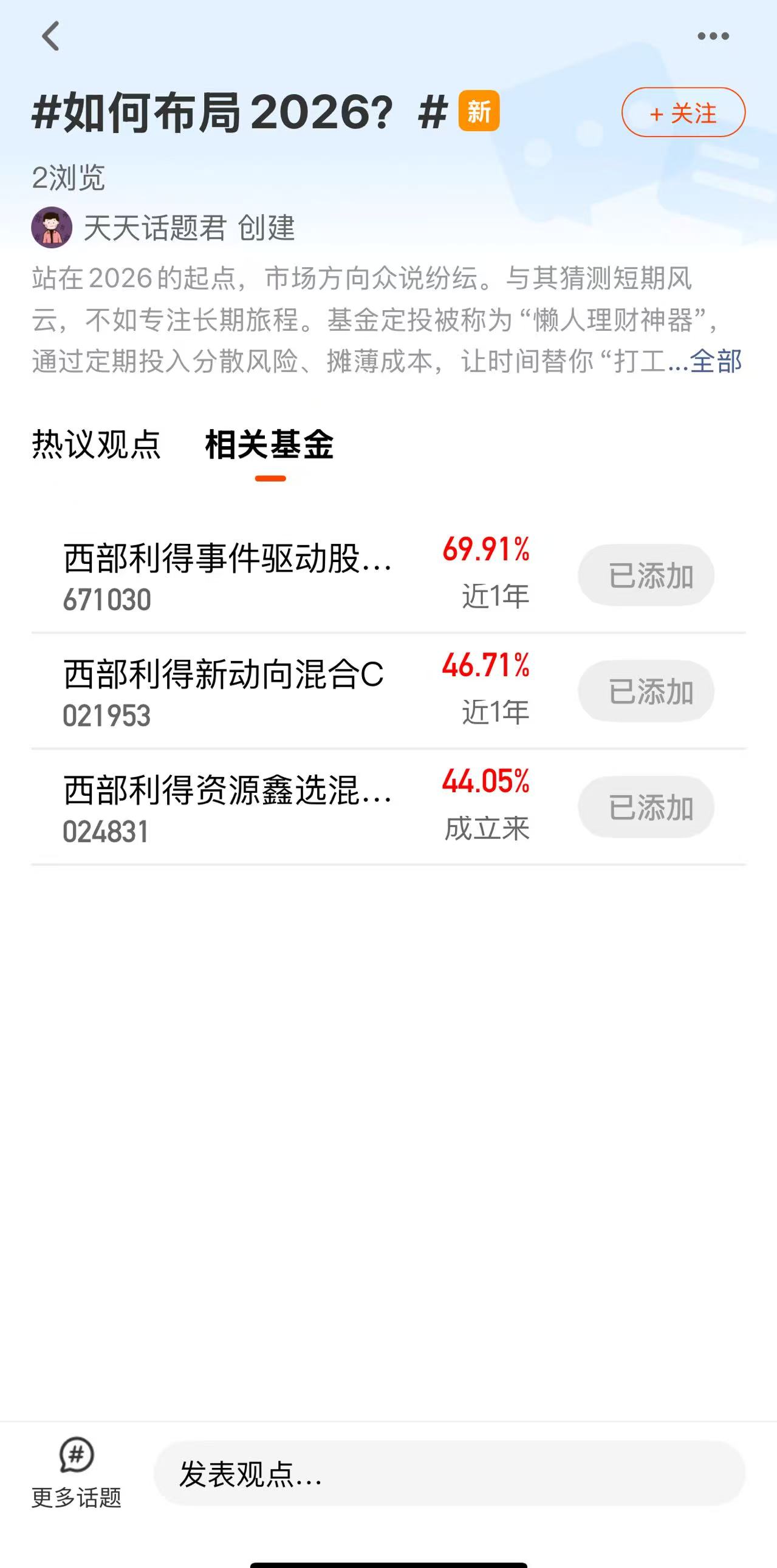 将#如何布局2026?#话题关联的3只【相关基金】一键加入自选。