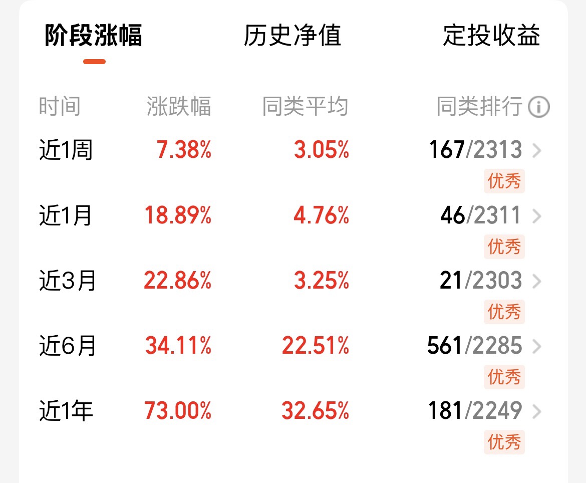 $中邮军民融合灵活配置混合C$年收益率有七十三个点,排名遥遥领先,昨天又吃上了四