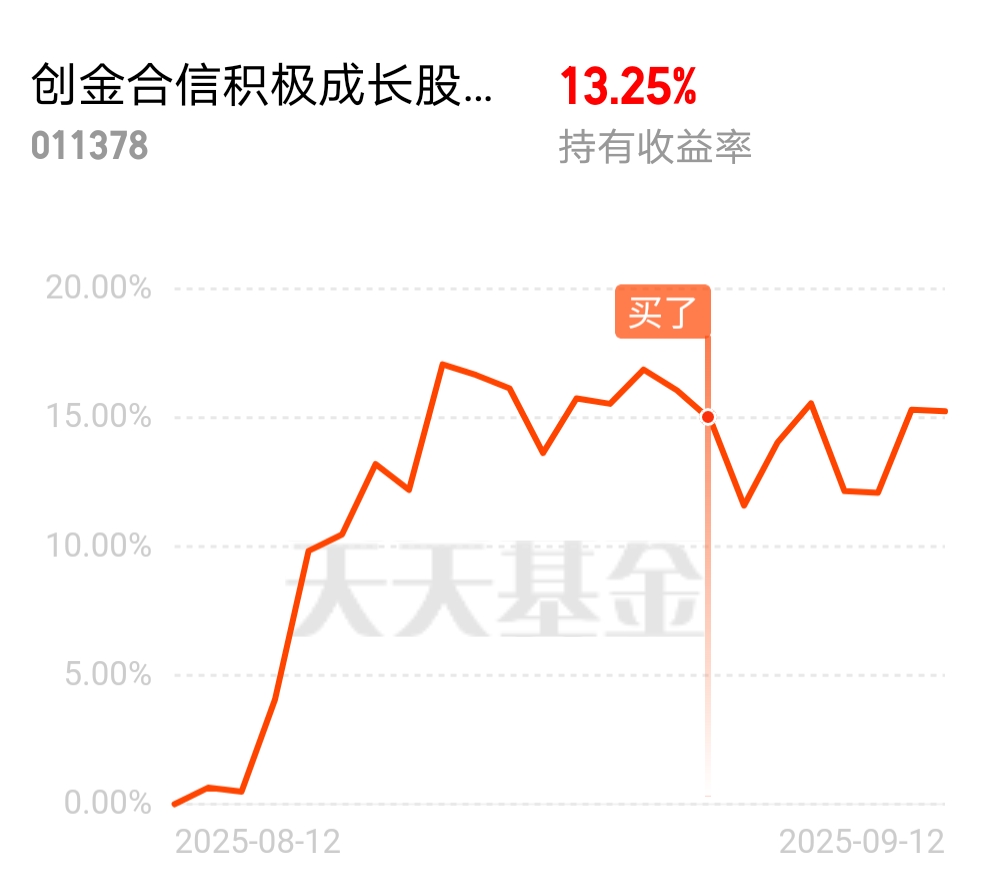 $创金合信积极成长股票C$拿了一个月收获13个点,还算不错