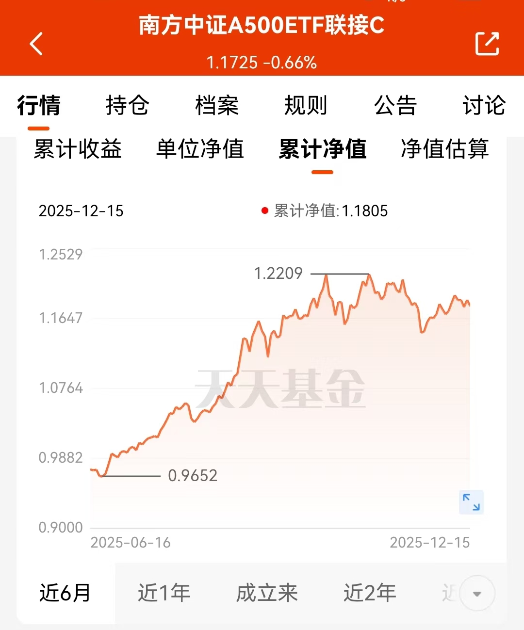 中证A500指数里的公司,2025年预期净利润增长率10.3%,比沪深300高,说明这些公司成长性不错。而且指数估值现在不算贵,历史上这个位置买入,持有1年、2年正收益概率都挺高。现在市场震荡,正好是分批布局的时候,等明年春季躁动行情来了,说不定能吃到一波。$南方中证A500ETF联接C$(022435)这个基金,费率低是一方面,关键是它跟着的是A500指数,指数涨它就涨,不用操心基金经理水平咋样,省心。#茅台批价两日涨近百元!白酒挤泡沫结束?#