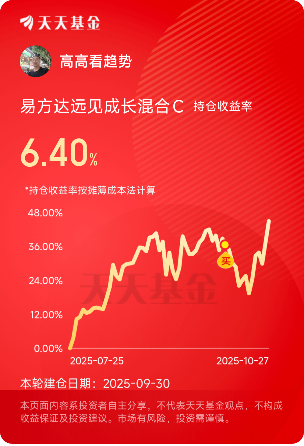 #晒收益# 科技的主线行旗下。还是主动的科技基金收益更高。$易方达远见成长混合C$ 昨天又上涨5.4%。大幅跑赢了同类平均业绩。长期稳定收益的能力强。聚焦科技成长表现好。近年来一直在创新高。看好四季度继续突破。