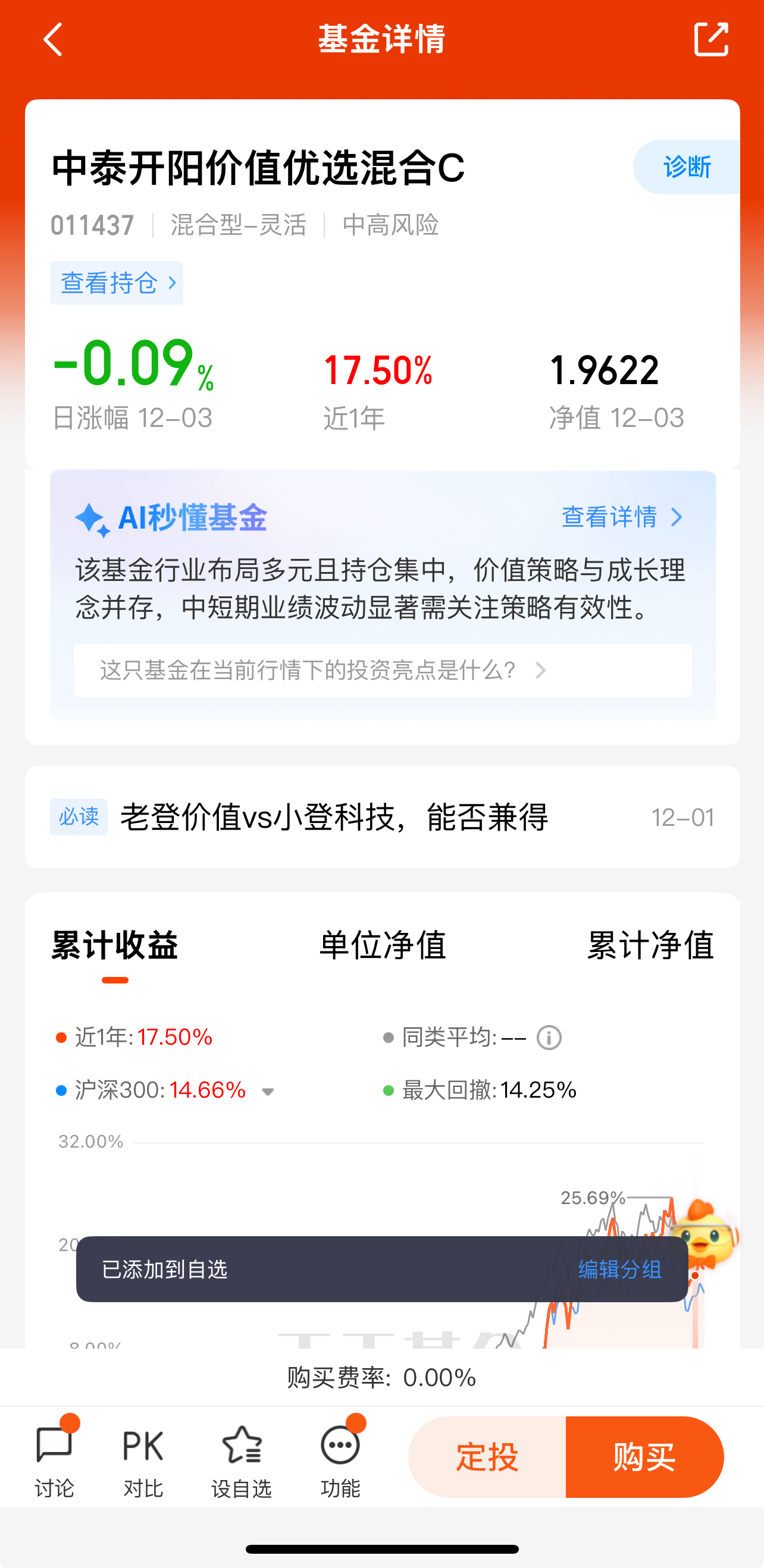 骑牛看熊持有并看好中泰开阳价值优选混合C(011437),主要原因有8点: