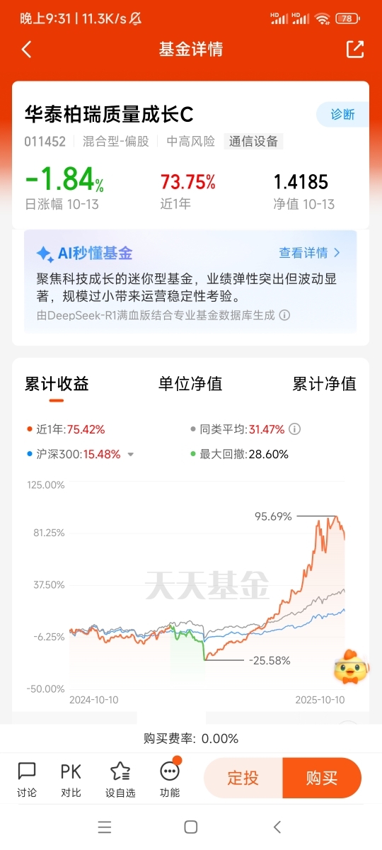 因此,我计划长期持有华泰柏瑞质量成长C,充分分享AI产业长期成长带来的红利。长期持有不仅能够避免短期市场波动带来的投资风险,还能够享受复利增长带来的收益。