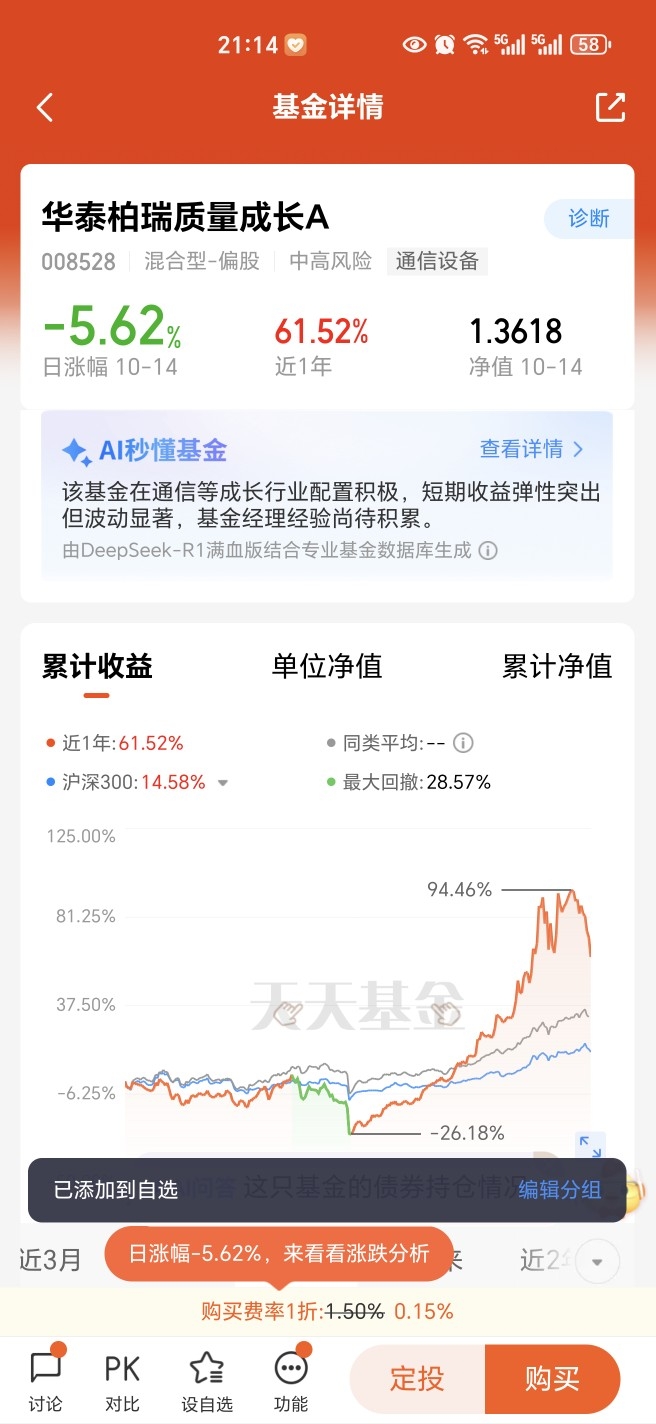 - 费率结构合理:华泰柏瑞质量成长C采用C类份额的费率结构,不收取申购费,赎回费也相对较低,且随着持有时间的增加而递减。同时,该基金的管理费率和托管费率也处于行业较低水平,能够有效降低投资成本,提高投资收益。