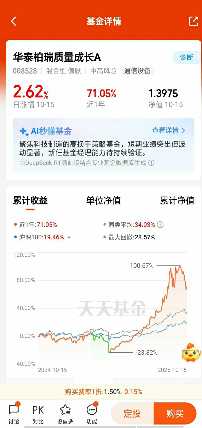 当然,我也明白,AI 产业发展不会一帆风顺,技术突破和商业落地得等,短期波动躲不掉。但长期看,人工智能重塑各行业是大趋势,借华泰柏瑞质量成长基金参与这场科技浪潮,就算遇到关税这类外部冲击,有专业管理团队调整持仓,心里也踏实些。我已将华泰柏瑞质量成长基金加入自选,打算持续观察,等待合适时机布局。@华泰柏瑞基金
