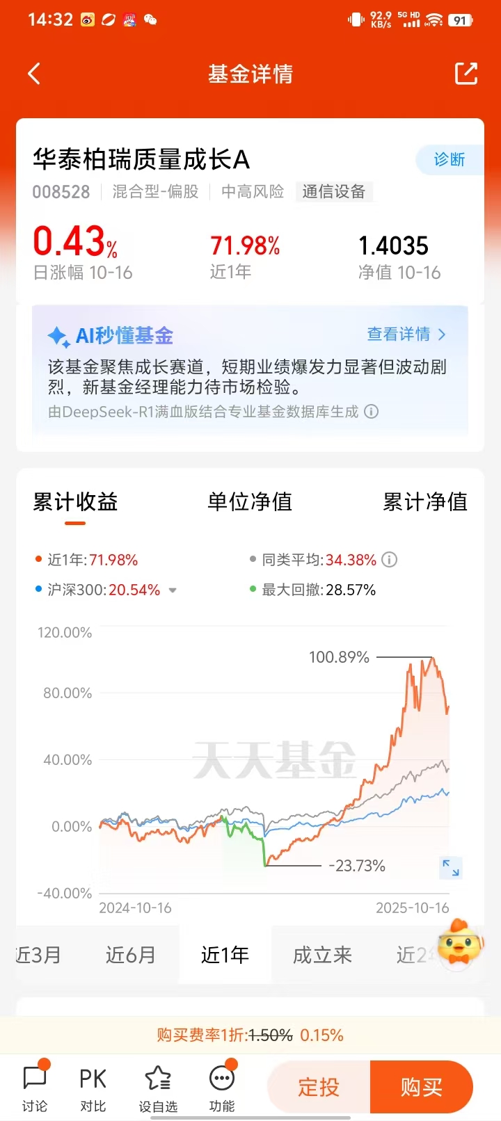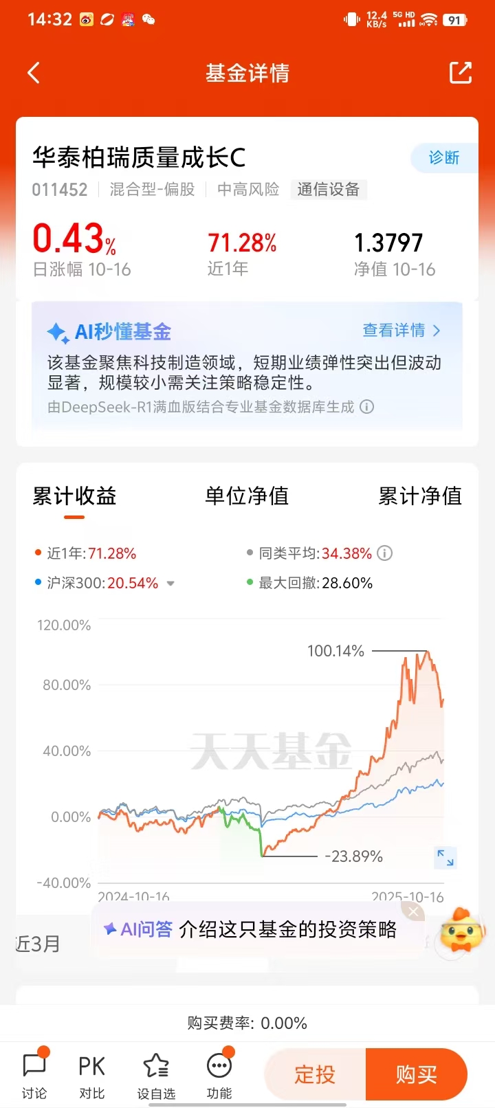 人工智能板块短期受市场情绪影响可能出现波动,但产业趋势和政策支持下的长期增长逻辑未变。以定投或分批建仓方式应对波动华泰柏瑞质量成长C基金凭借优秀的基金经理团队和明确的投资策略,能够动态调整持仓结构,捕捉AI产业链不同环节的机会,比普通指数基金更具主动性优势,可作为布局该板块的优质工具。@华泰柏瑞基金