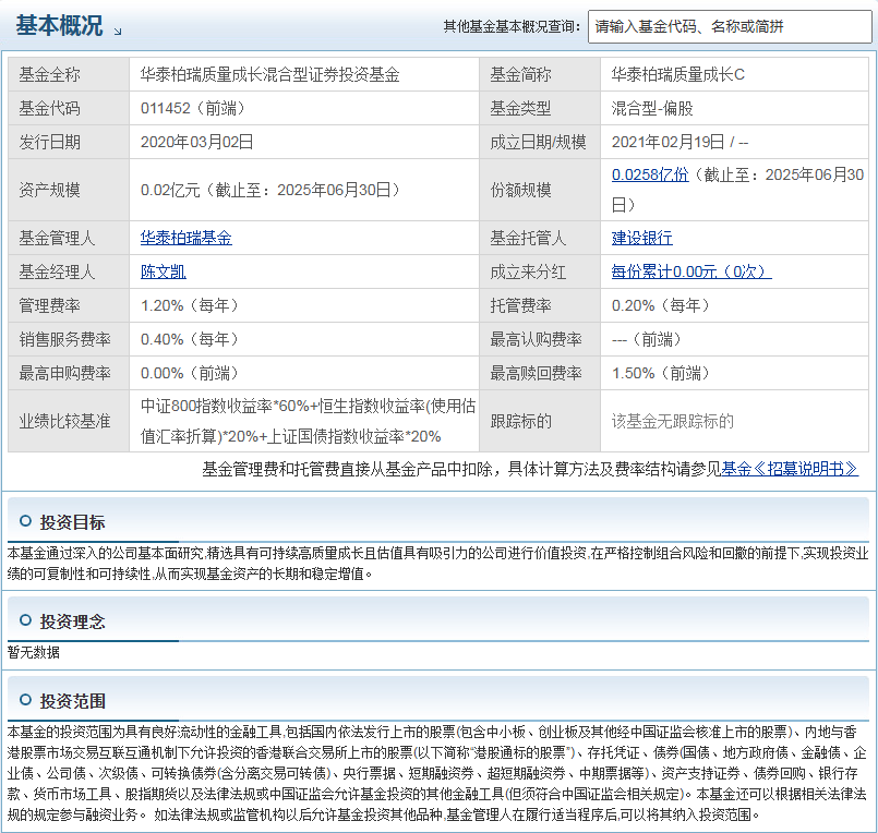 华泰柏瑞质量成长混合C(011452)基金由华泰柏瑞基金管理有限公司管理,基金经理是李晓西。专业的基金管理团队和经验丰富的基金经理,在投资分析、决策等方面有更专业的能力和更丰富的经验。他们就像是投资战场上的指挥官,能够根据市场情况做出更明智的投资决策,为基金的运作保驾护航。
