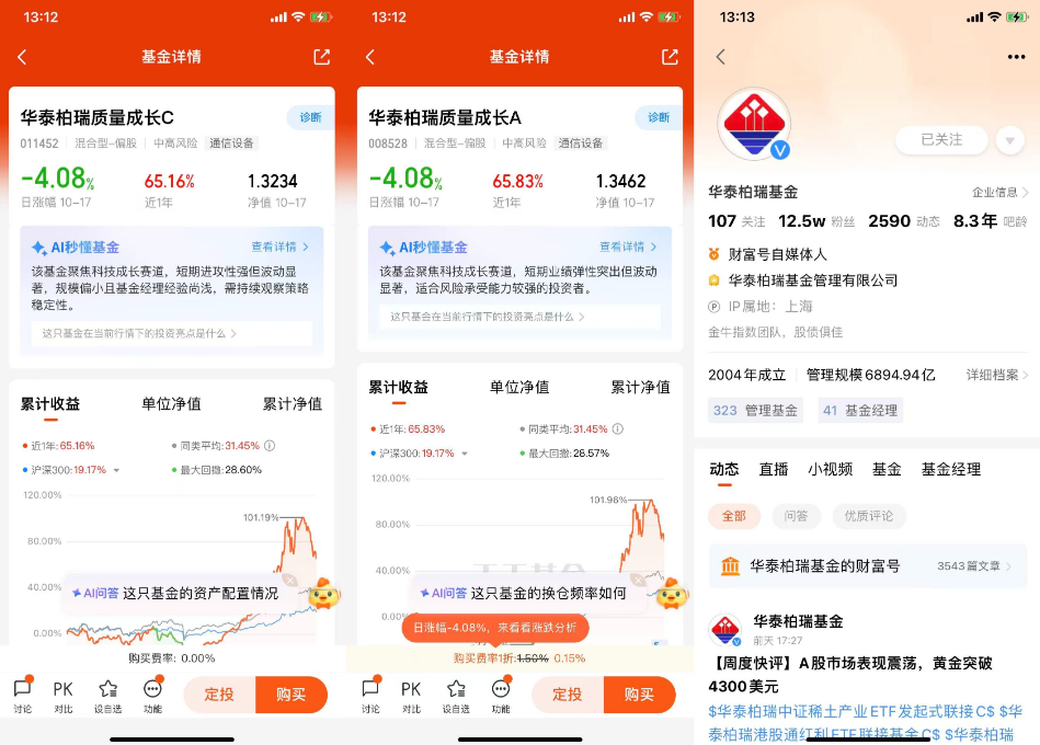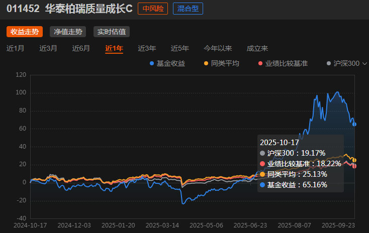 要说这只基金最近的表现,简直让人刮目相看。近一年,它的涨幅高达65.16%,这个数字在大多数基金中都算是非常亮眼的。如果你也关注过股市的话,知道有时候市场起伏大,能在波动中仍然保持这样的增长,真的是很有实力。比起一些同行,华泰柏瑞质量成长C能够在这样一个复杂的市场环境中跑出这样的成绩,说明它背后的投资策略和管理非常到位。
