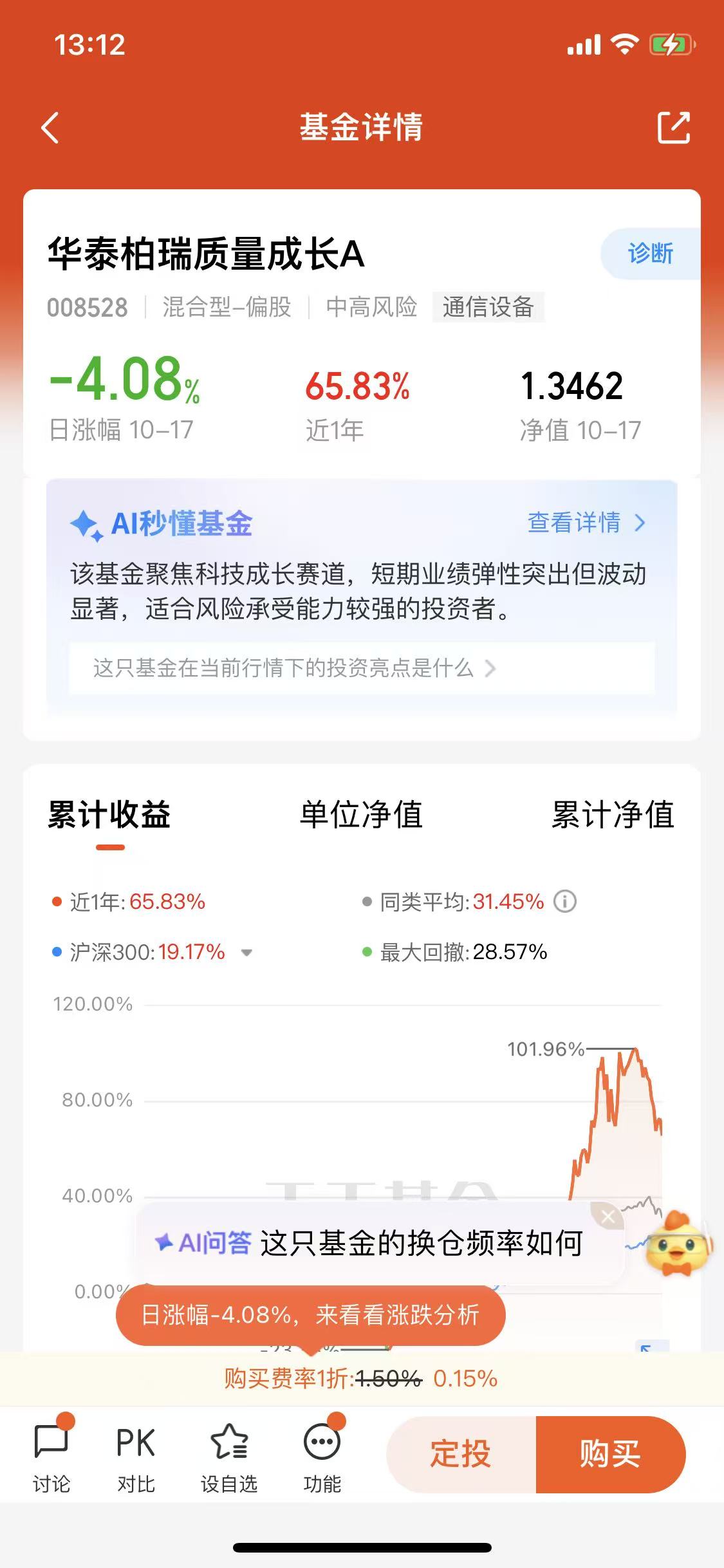 要是大家仍在寻找能参与人工智能产业周期、又具备中期弹性和稳健策略的基金,不妨重点关注这只产品。当前调整阶段仍是布局窗口期,上车也许正当其时。@华泰柏瑞基金 @天天精华君 @天天基金创作者中心