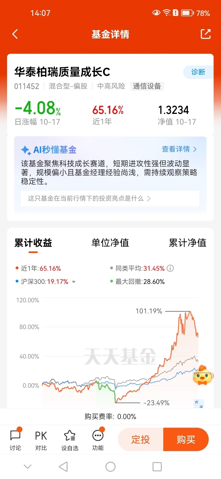 看好$华泰柏瑞质量成长C$ 布局人工智能大未来。