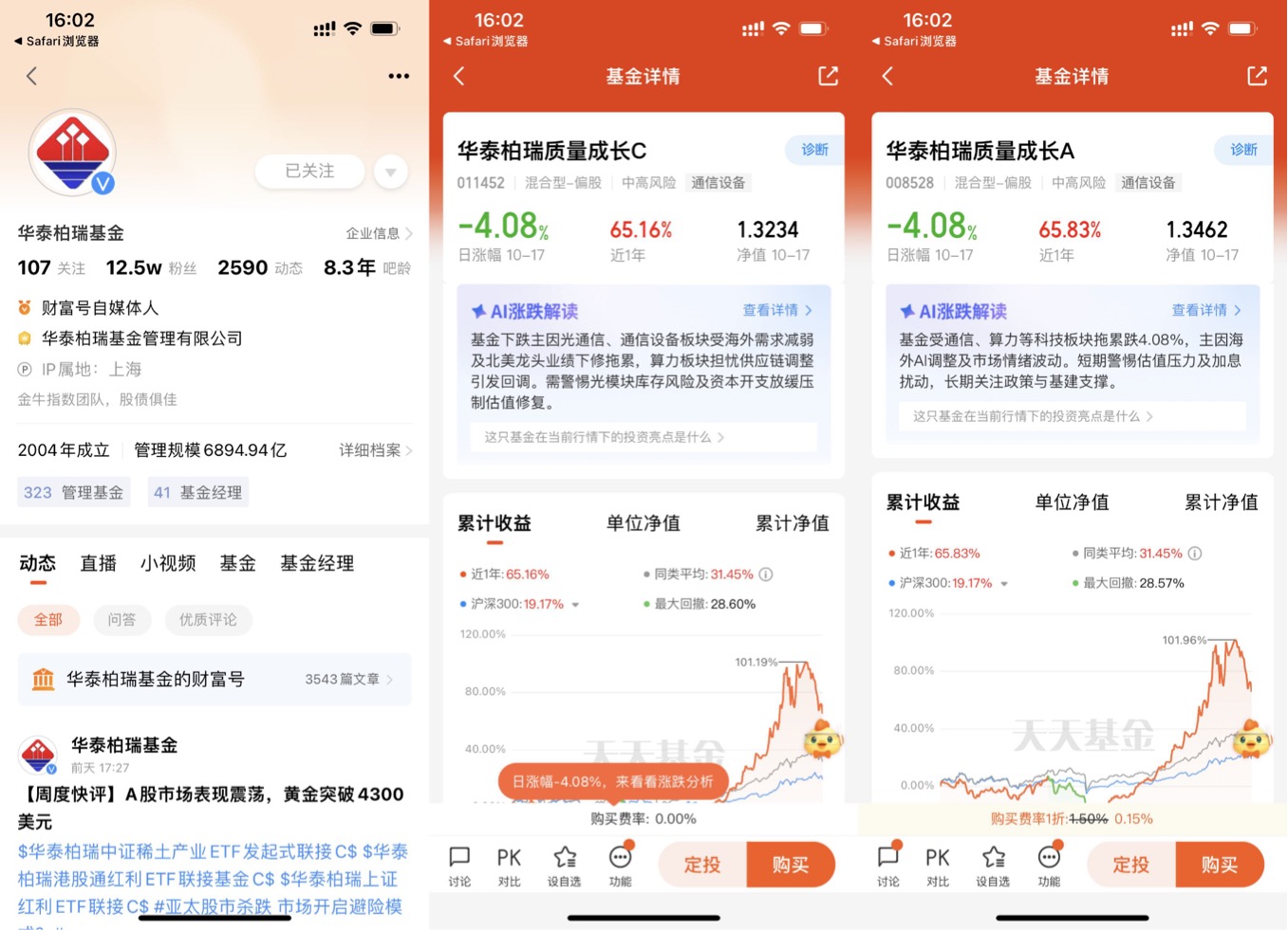 那么,作为普通人,如何搭上这趟注定驶向未来的“人工智能快车”呢?我的想法是:选对“司机”至关重要。在众多选项中,华泰柏瑞基金旗下的华泰柏瑞质量成长混合基金(A:008528,C:011452)最近引起了我的高度关注。原因很简单:这只基金的投资方向与AI浪潮高度契合。翻看这只基金最新的二季度持仓,可以看到其股票资产占比高达93%,显示出其积极进取、追求成长性收益的投资策略。具体来看,像新易盛这类通信设备龙头就深度参与CPO业务,这可是AI算力网络的关键硬件。还有其他重仓的信息技术企业,也在往光通信、算力硬件方向靠。而且它不只押注 CPO,还搭配了高端制造、消费电子里的绩优股,比如春风动力、匠心家居、小米集团等。这种组合既能享受到CPO这类高增长赛道的弹性,又能靠这些基本面稳健的标的对冲风险,可以说非常适合像我这样中等风险承受能力的投资者。