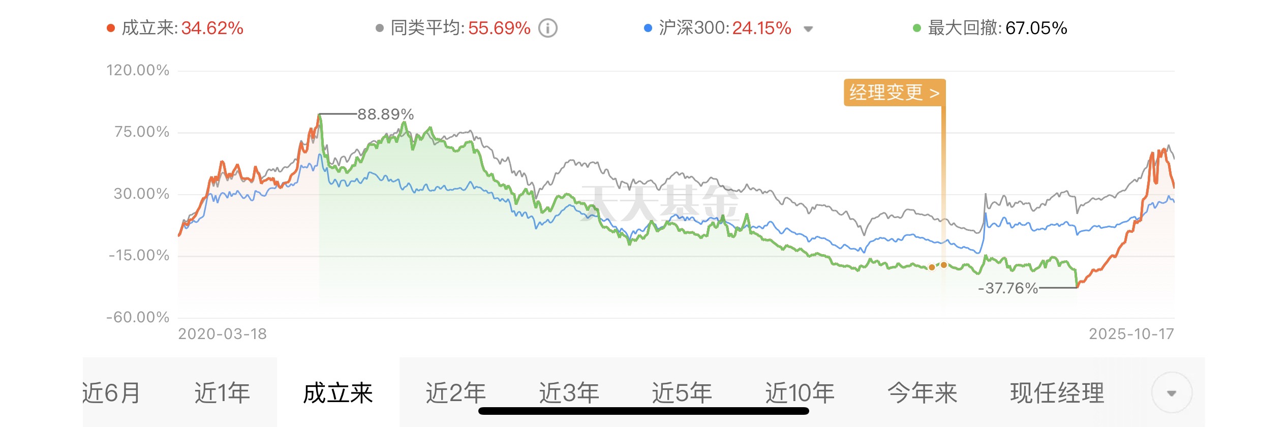 有了优秀的基金管理人,基金业绩自然而然是水到渠成。截至2025年10月17日的数据,该基金A类份额近3个月涨幅高达28.31%,近6个月涨幅更是高达104.37%,近一年涨幅为68.83%。从近一年维度看,其不仅大幅跑赢同期沪深300指数19.17%,更是显著超越了同期中证人工智能指数的64.90%。在AI主题基金中,这样的表现确实非常亮眼。